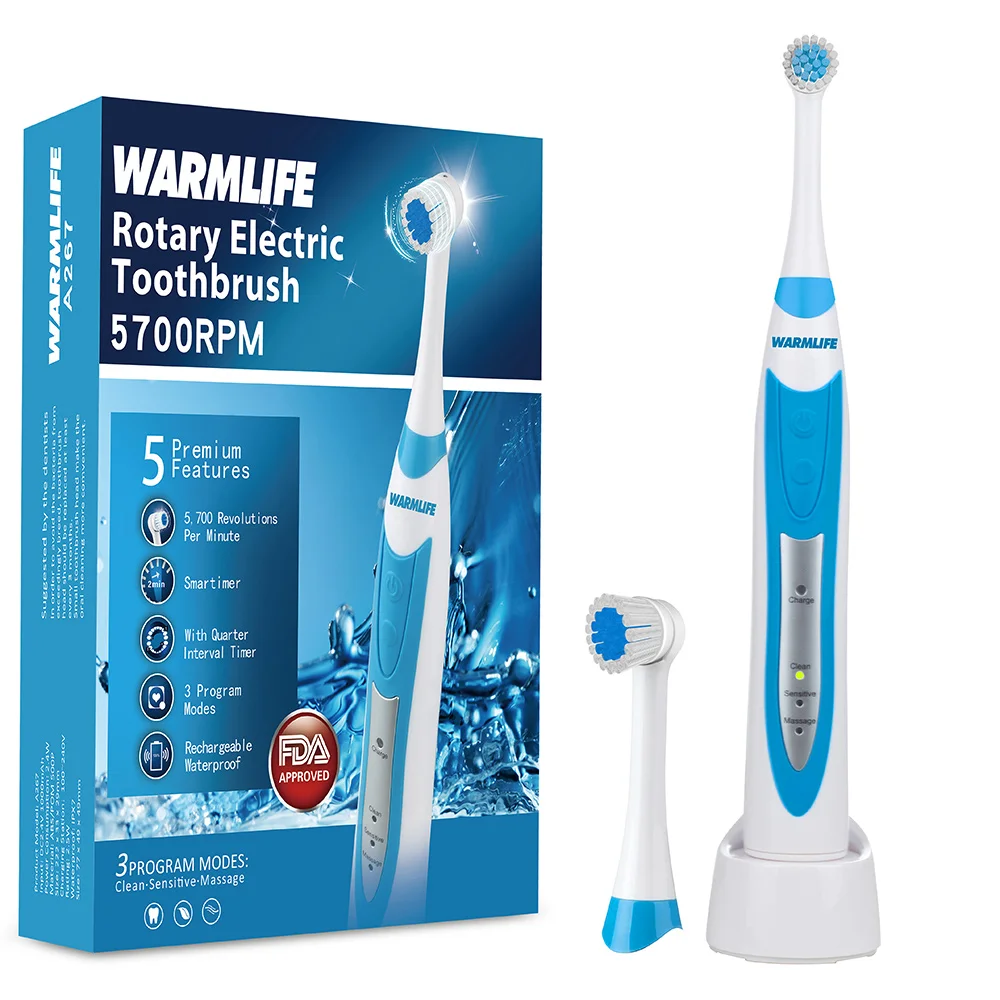 Warmlife 5700 Rpm Sonic Electric Toothbrush Clean Rechargeable Rotating Replacement Heads Set Oral